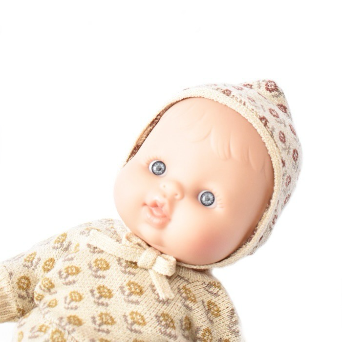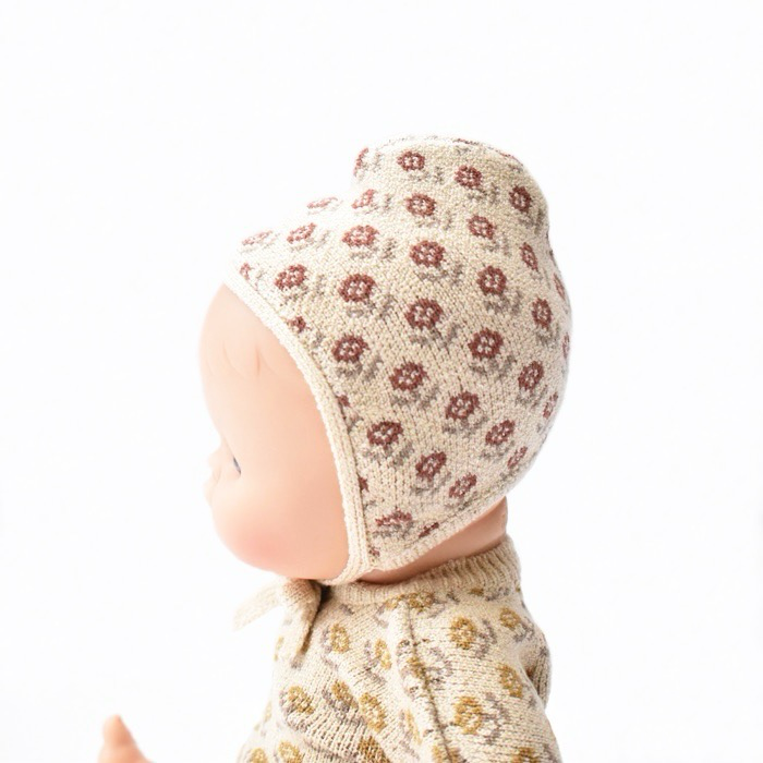 minikane doll clothes Beguin Elie en tricot Fleurs des champs brique