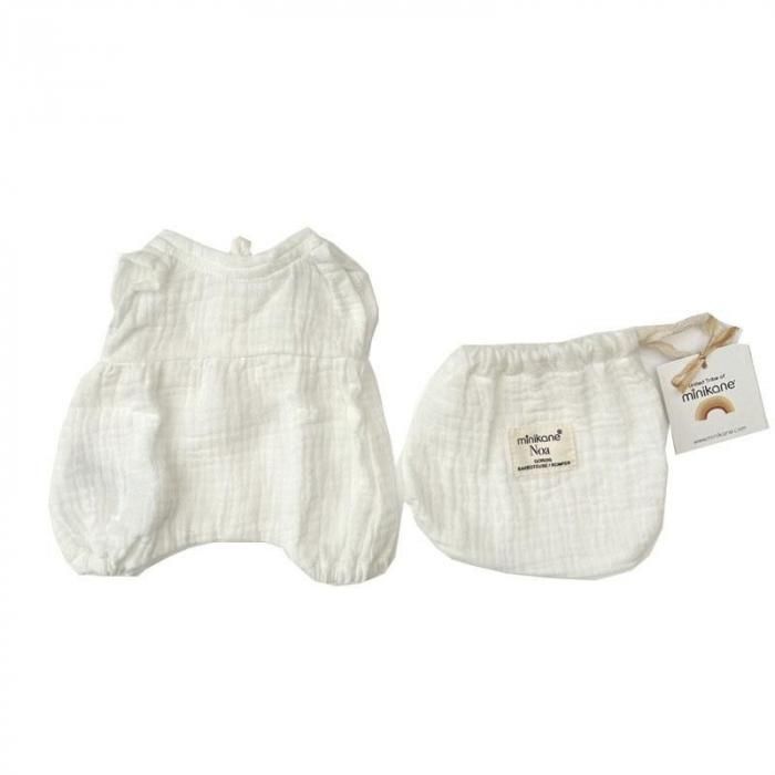 minikane doll clothes¡¡Noa romper in white cotton gauze with pouch